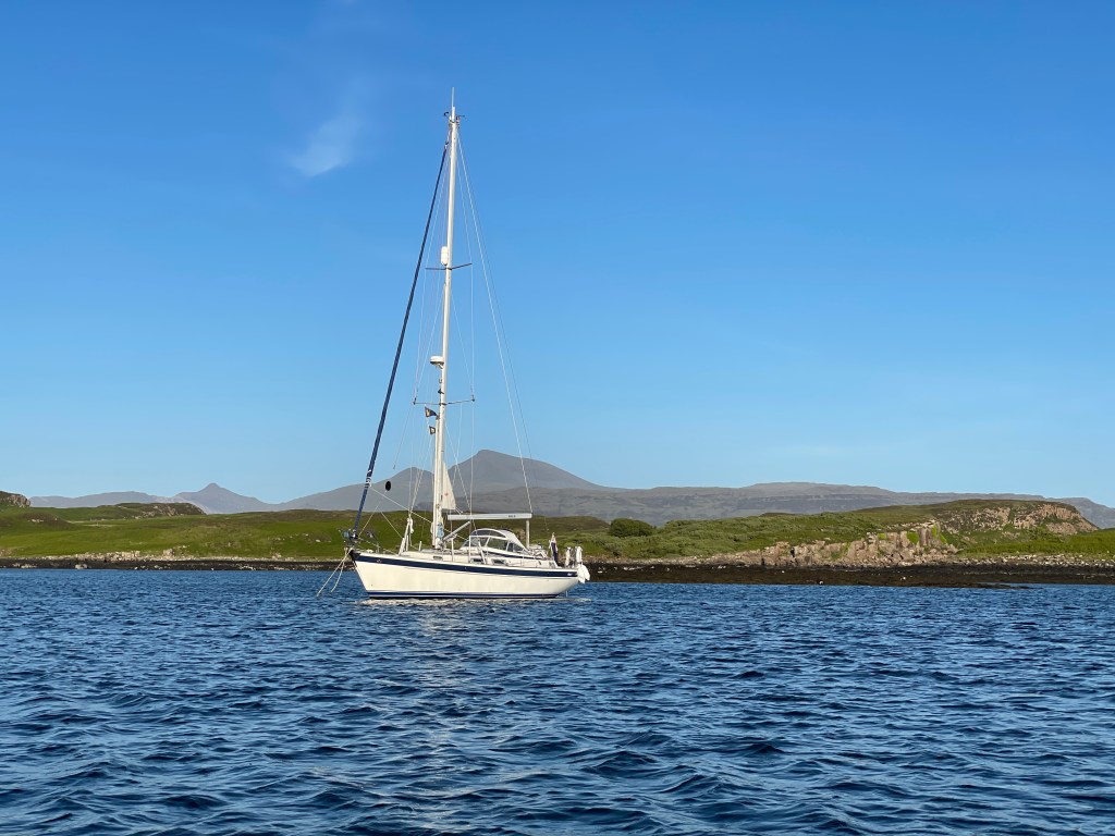Our cruise over 16 nights covered 552 nm, 28 stops (only once briefly alongside), about 14.5 days of sunshine, and sprayhood down every single day! Not bad for a Scottish West Coast cruise. And not a single midgie! Fingers crossed for similar luck with the weather for our next cruise!