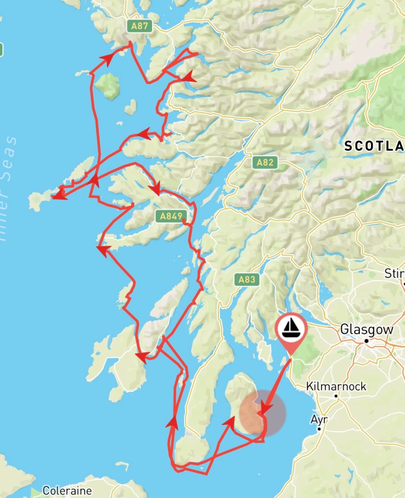 Following our fabulous cruise in late May / early June, when we had 16 days of sunshine and settled weather, our attempted weekend cruises around the Clyde cruising area over… Read more: A 10 Day Scottish West Coast Cruise – August/Sept 2023 - West Coast of Scotland May/June 2023